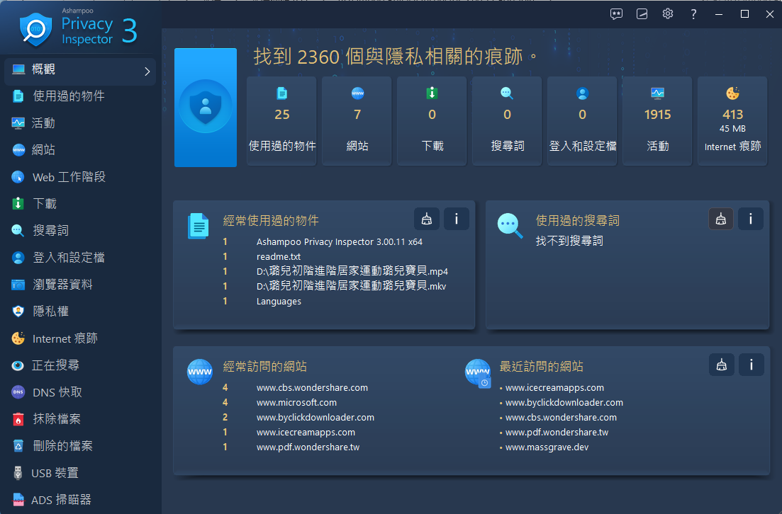 軟體名稱】:(更新) Ashampoo Privacy Inspector 3.00.11 隱私保護工具 + Portable