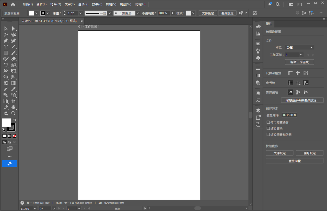 Illustrator作品是基於向量的軟體,所以它可以拉遠到搬移螢幕,也可以拉近到