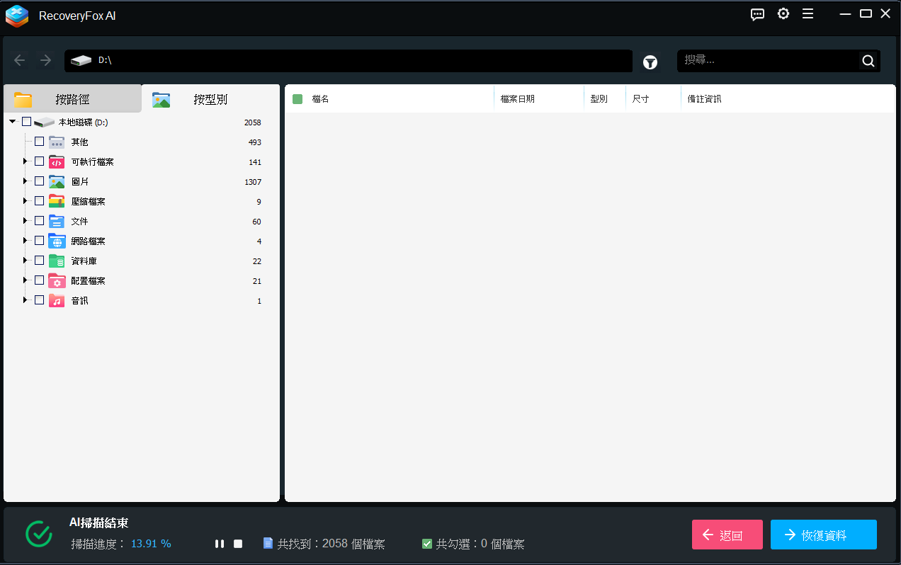 軟體名稱】:免安裝 RecoveryFox AI 1.0 利用 AI 掃描技術來找回遺失或刪除的檔案