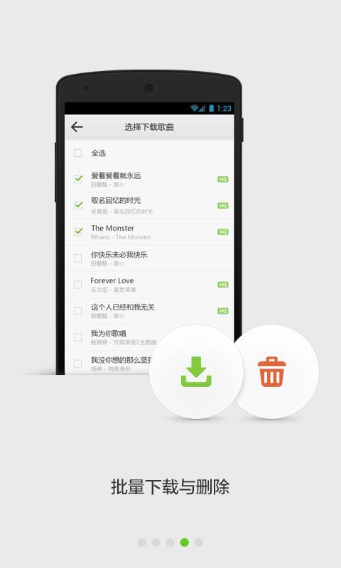 本軟體以網路音樂為核心,具備播放、下載、專輯圖片和歌詞等功能,尤其是我的收藏歌曲同步功能將手機平臺和PC平臺打通,是其最大亮點。