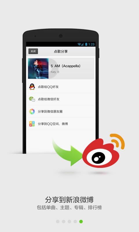 1. 支持分享單曲,主題,專輯,排行榜到新浪微博;