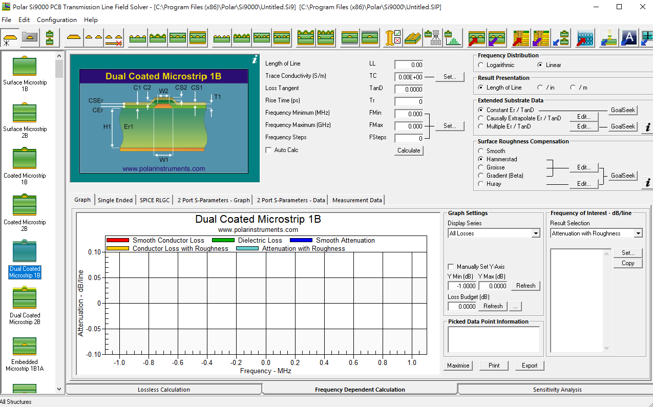 除了阻抗,SI9000還能計算傳輸線在高頻下的損耗,內含: