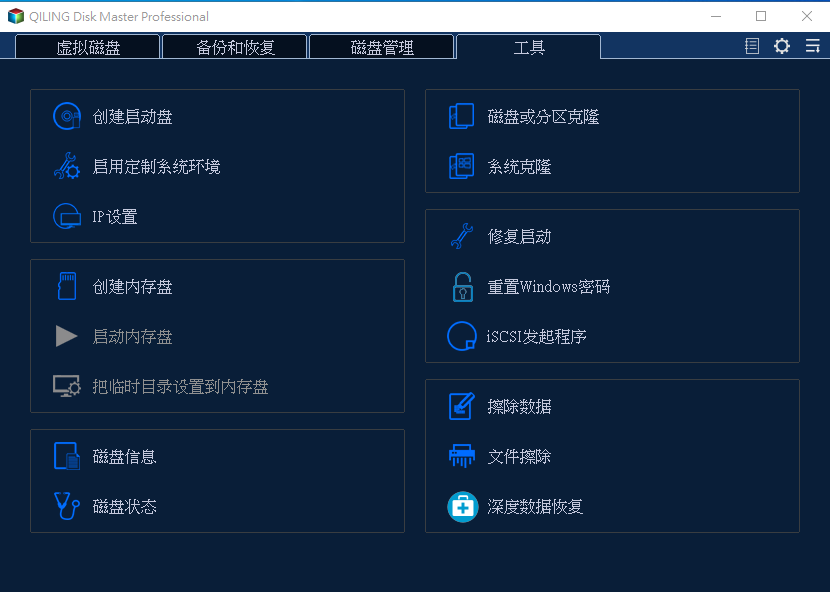 QILING Disk Master 一款多功能磁碟管理與備份軟體,主要用於資料備份、系統