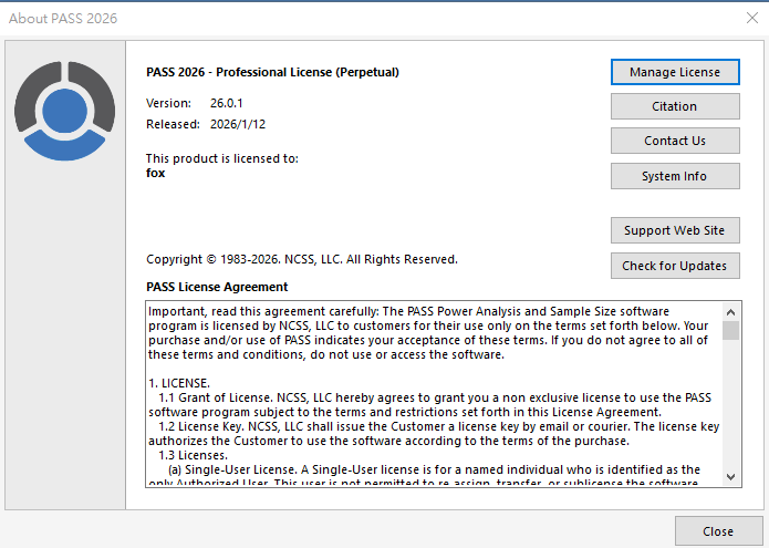 【軟體名稱】:(更新) NCSS PASS 2026 v26.0.1 專業的統計分析軟件