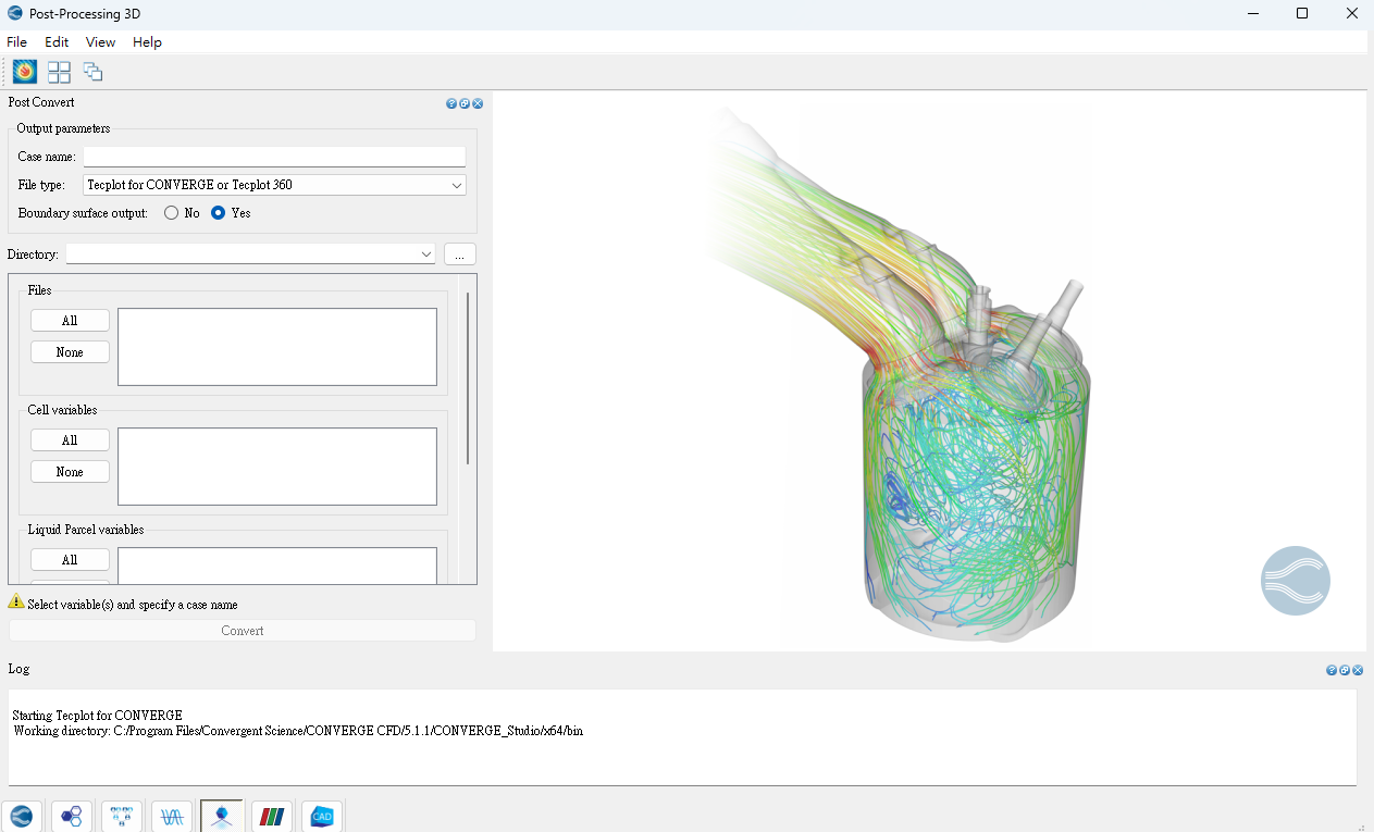 於設定、準備、執行以及處理 CFD 模擬案例。其核心是 CONVERGE CFD 求解