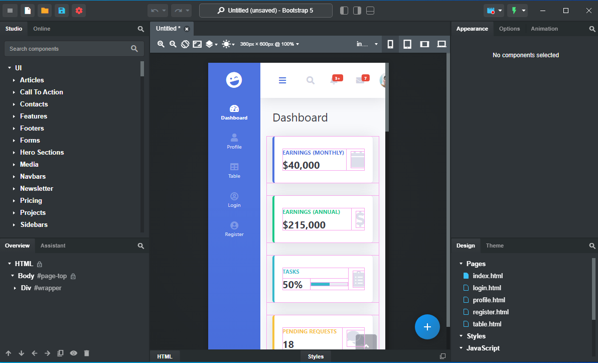 Bootstrap Studio 一款專為開發響應式網站和前端設計而設計的桌面應用程