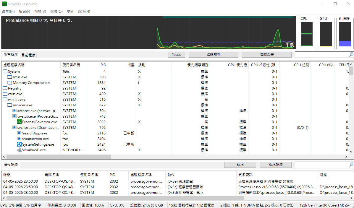 Bitsum Process Lasso Pro 一款 Windows 平台下的高級系統性能與自動化管
