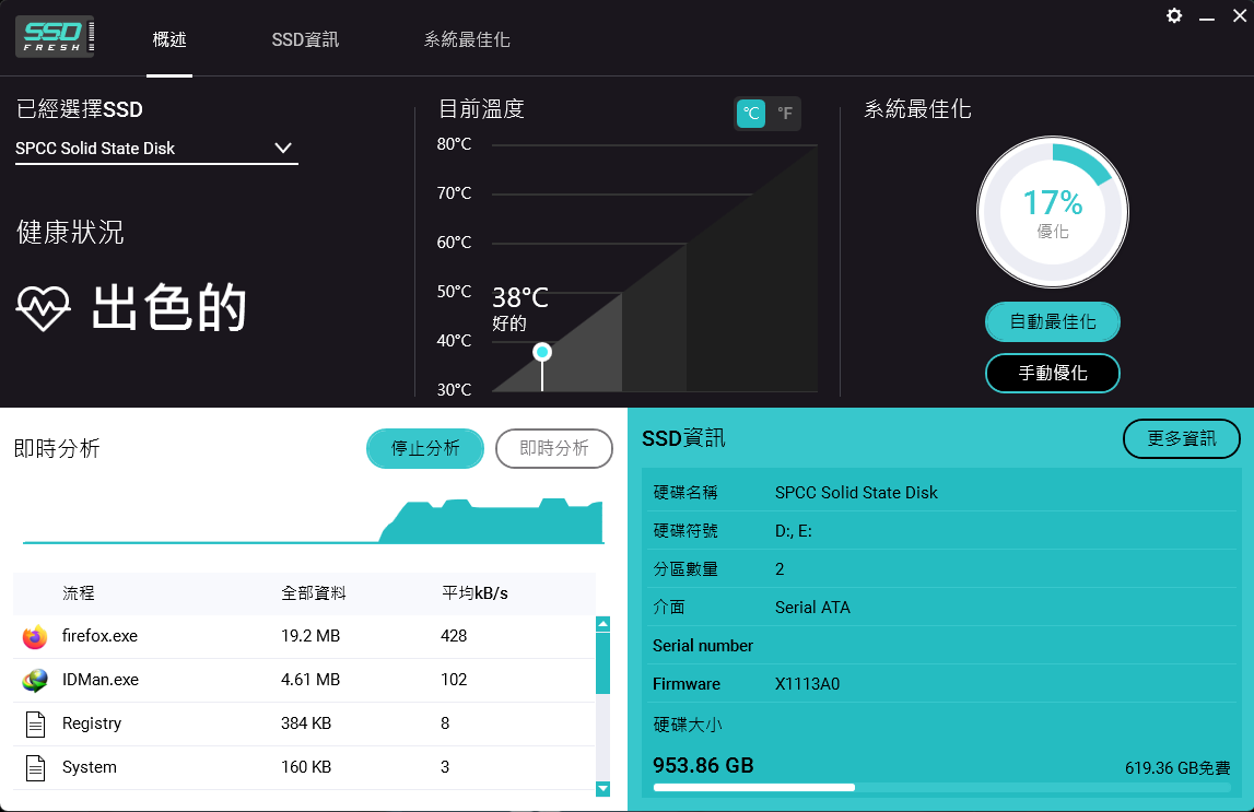 實時監測 SSD 健康狀況與寫入量,提供預警機制。