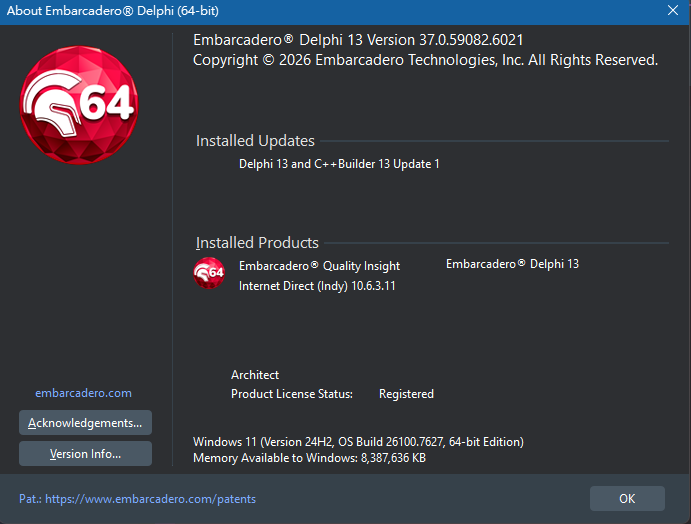 【軟體名稱】:(更新)Embarcadero Delphi 13.1 Florence v37.0.59082.6021 RTM Update 1 Lite v19.1