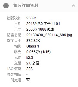 ↓ 照片的詳細資料,顯示相機類型為Glass 1