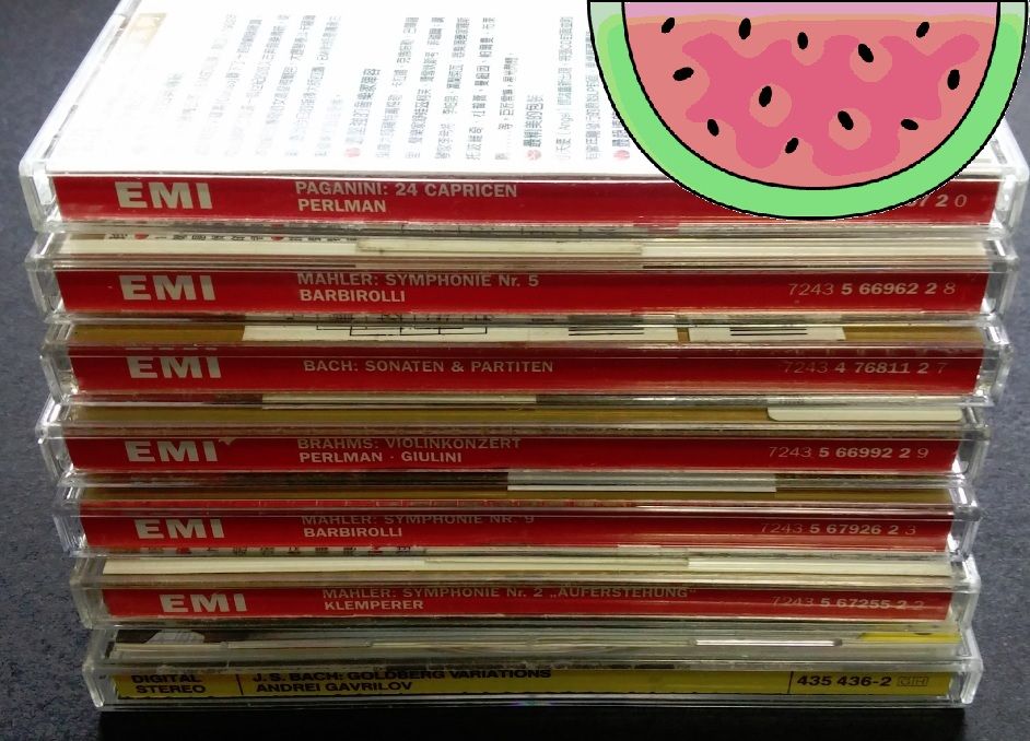 看到那一堆EMI的CD讓人眼睛為之一亮!: ♡。゚.(*♡´◡` 人´◡` ♡*)゚♡ °・帕格尼尼、巴哈、馬勒、布拉姆斯...哈~咖啡姊真是心動啊!