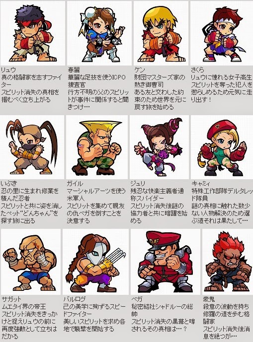 值得一提的是,屆時《街頭霸王》中的角色將以Q版的可愛形象在《ストリートファイター パズルスピリッツ》中登場,玩家只要通過簡單的操作便能操控這些角色,進行愉快的遊玩。遊戲同時加入了「成長」的要素,玩家可以選擇自己喜歡的角色進行培育升級。