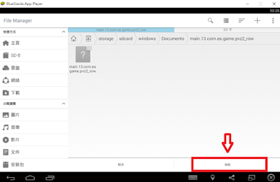 1.打開BlueStacks的文件管理器app(若沒安裝,請到play商店下載安裝),